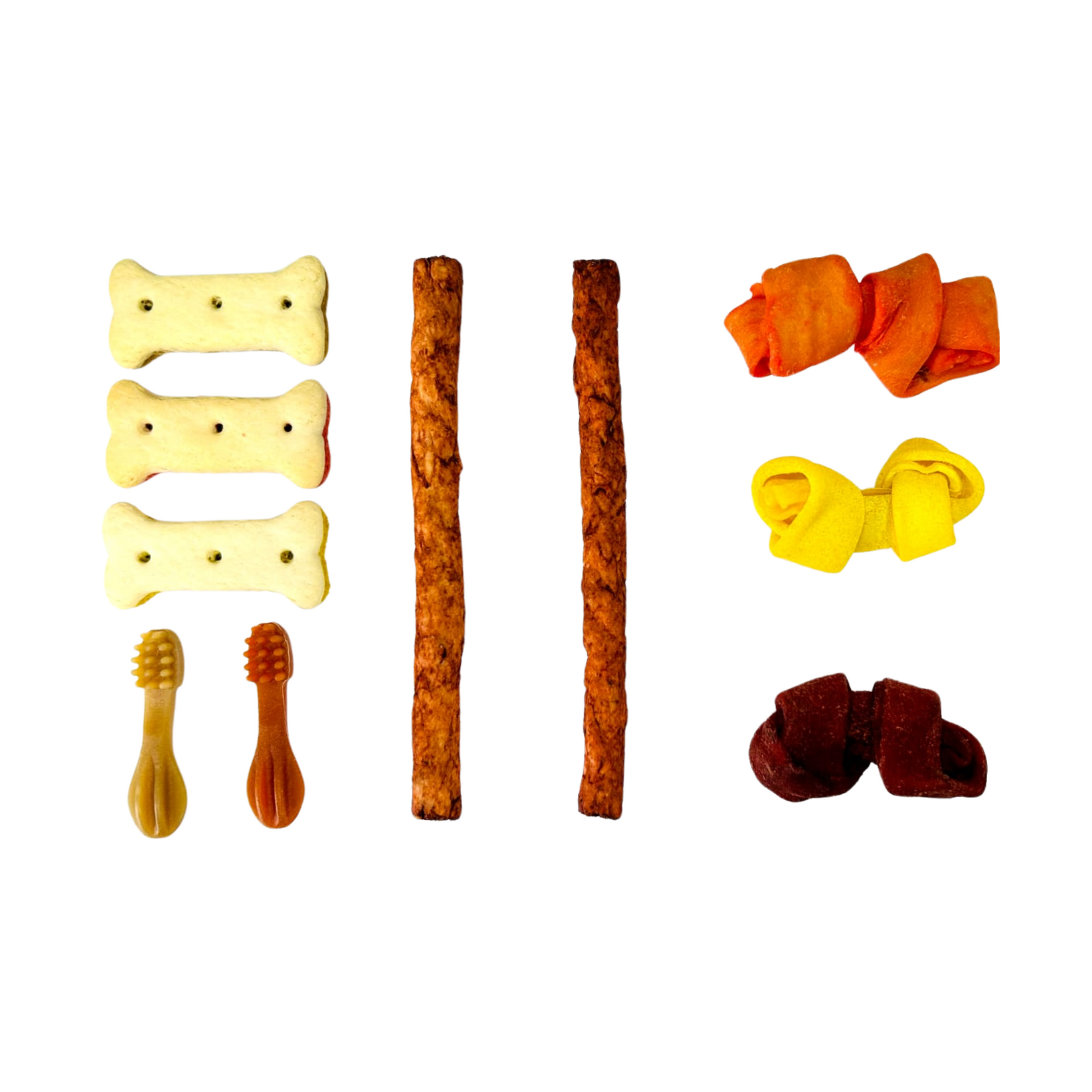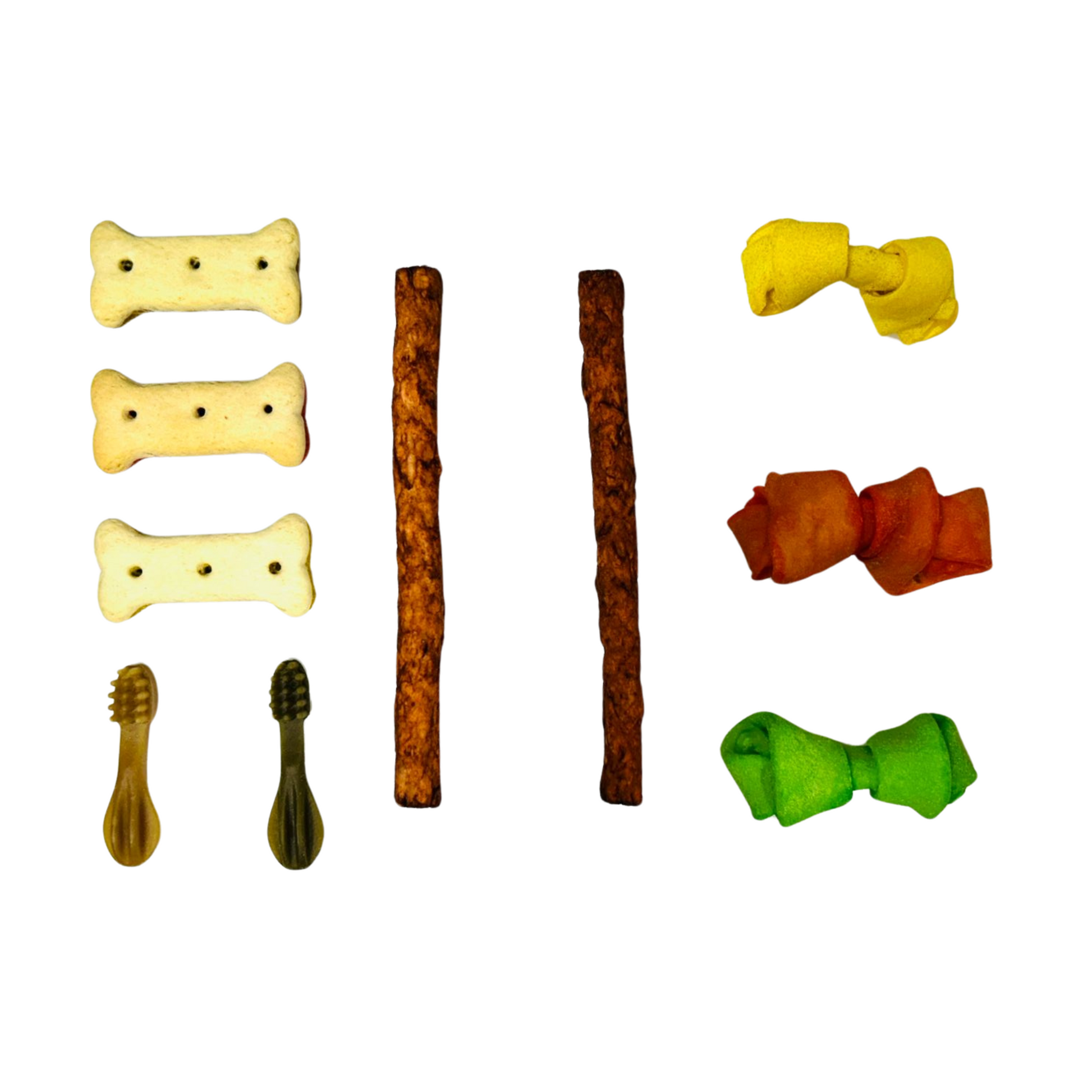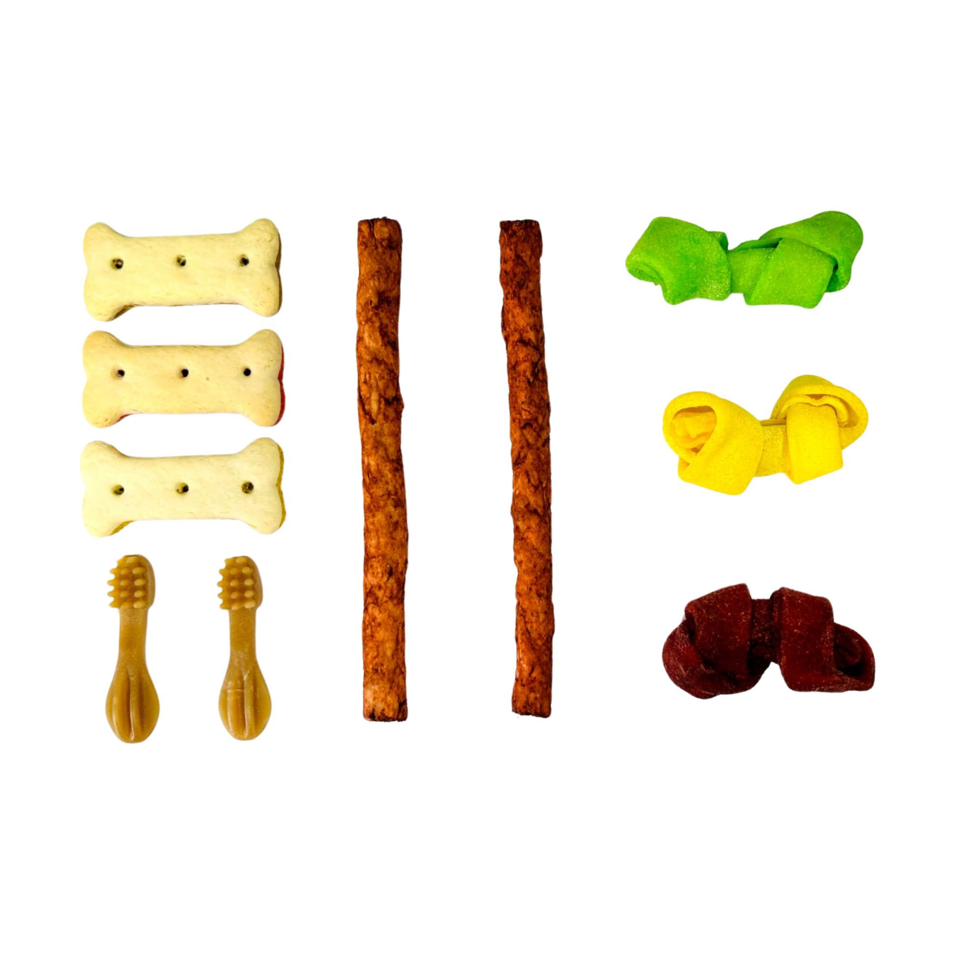 - 2 huesos de carnaza de sabor surtido (res, pollo, clorofila o tocino) XS (2-3").
