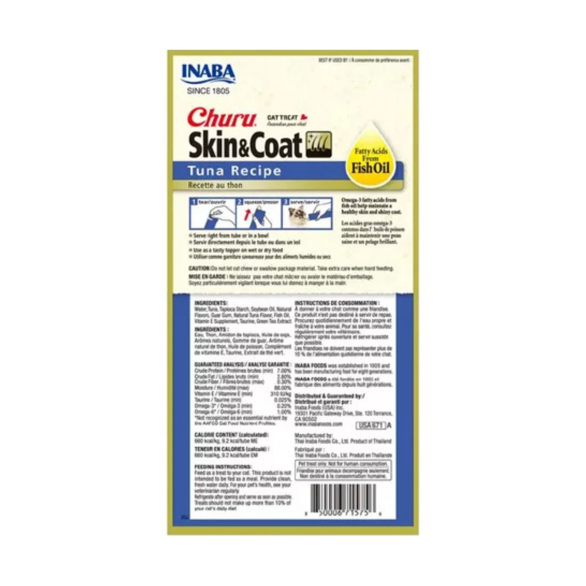 ¡Deleita a tu gato con la irresistible fórmula de Churu atún para el cuidado de piel y pelaje! El snack perfecto para consentir a tu mascota mientras generas recuerdos con tu michi. Con su textura cremosa y delicioso sabor, estos snacks libres de granos, saborizantes, colorantes ni conservadores artificiales son ideales para consentir a tu gatito y promover su bienestar. Además, son perfectos para tomar junto con medicamentos. Su alta humedad proporciona el equilibrio que los felinos necesitan para mantenerse hidratados y saludables. Ya sea alimentándolos directamente de la mano, vertiéndolos en un plato o añadiéndolos como aderezo en sus alimentos, nuestros Churus de INABA ofrecen una forma innovadora e interactiva de pasar tiempo de calidad y reforzar la relación con tu mascota ¡Haz que cada momento sea inolvidable y sorprende a tu gatito con nuestros premios irresistibles!
