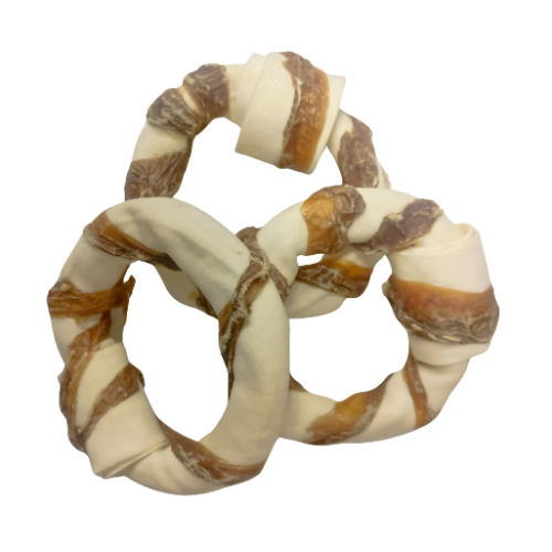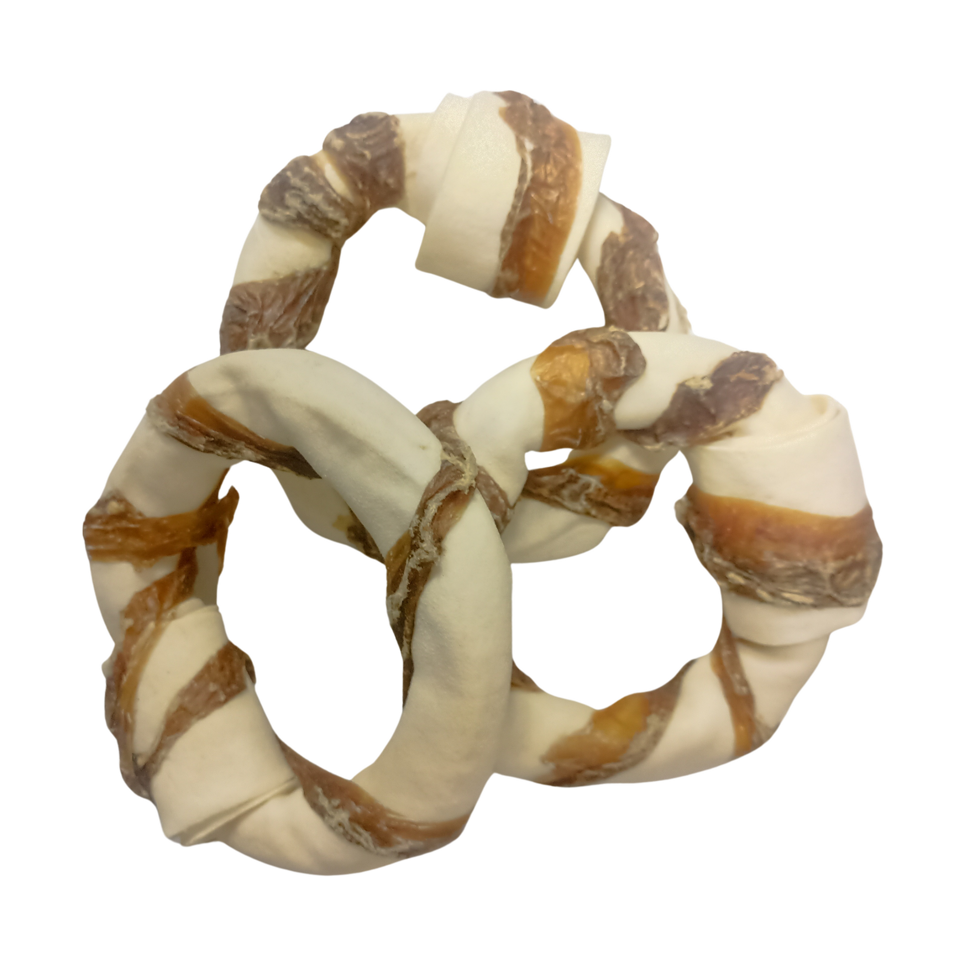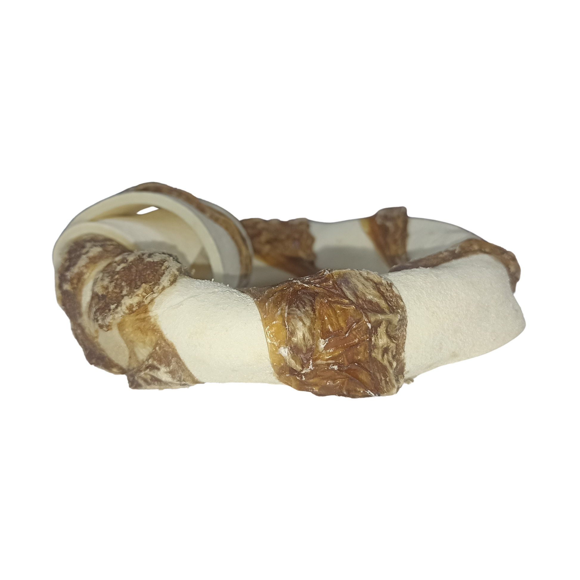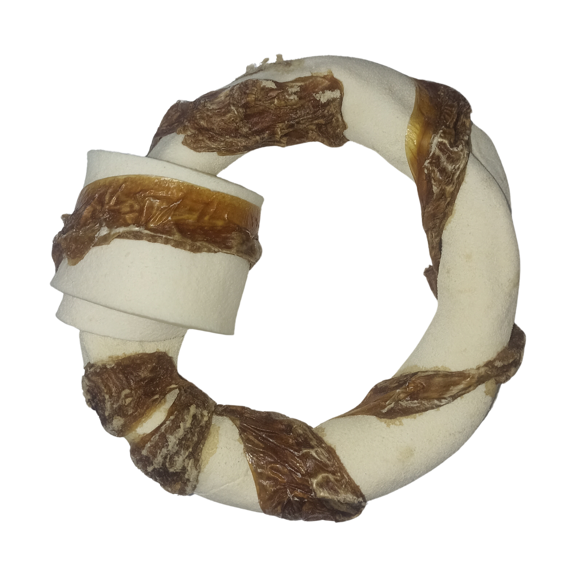 Carnaza de res en forma de dona envuelta con pulmón de res deshidratado.