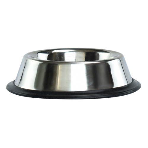 Descripción: Plato de acero inoxidable para perro con contorno antiderrapante.